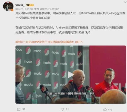 4月8日,开拓者队记Sean Highkin近日在节目中谈起杨瀚森,认为他是球队未来一部分。Sean Highkin说因为在球队的...